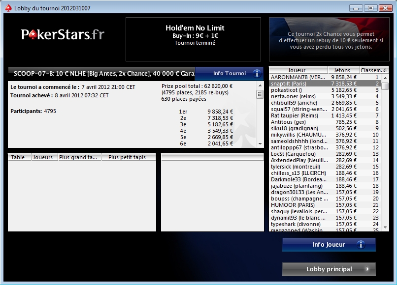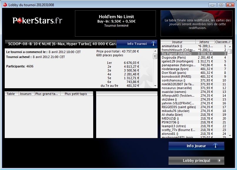 J’ai maté le thread “MTT du 8 Avril” et apparemment,beaucoup de Poker académiciens on perfé