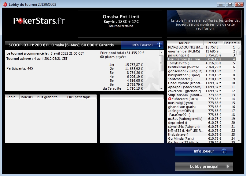 A noter la perf de buriénoir “le modeste” qui a fait une tres belle perf a 6K dans un scoop PLO je crois