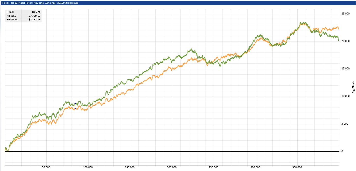 Mais ça n’empêche pas de bad run (au contraire la variance augmente quand le niveau monte à mon avis)et ma courbe d’allin-EV le prouve.