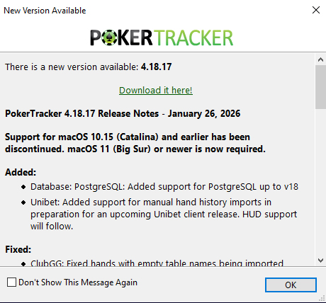Mise à jour de Poker Tracker 4 ce jour et il semble que cela annoncerait du nouveau prochainement pour unibet.