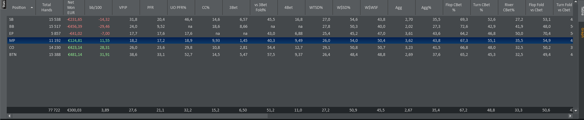 Sinon niveau winrate en SB et BB, on est dans les standards mais c’est vrai qu’en micros on peut espérer mieux, perso je n’ai jamais réussi à être perdant en SB par exemple.