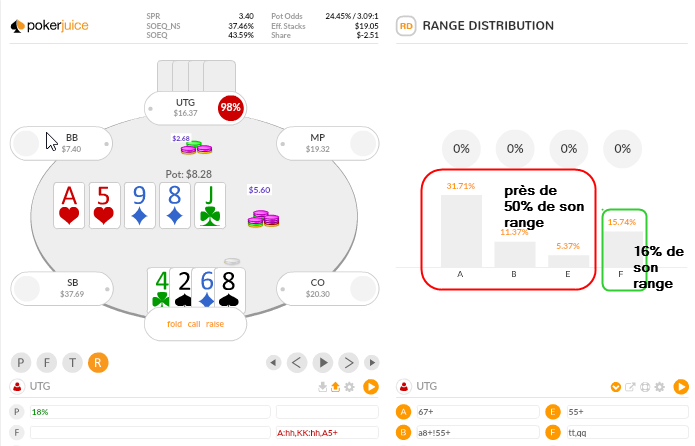[ici, j’ai pas mit de main pour lui mais ça prend juste en compte l’impact de son range sur ce flop et ton range en face]