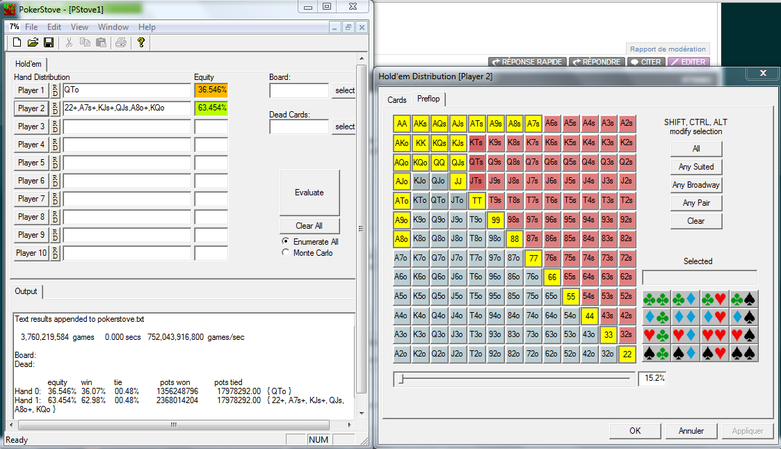 Tiens regarde si on te mets cette range de shove son call est EV+ et même si il n’y a pas beaucoup de mains entre vous je pense qu’une range tight de shove correspond à cela environ :