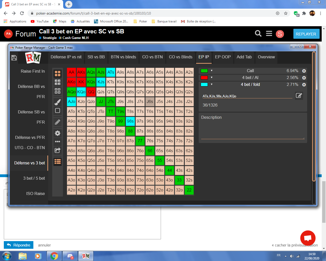 Ce que je ne comprends pas c’est que j’ai une range de défense 3 bet selon moi assez tight et que T9s en EP IP est un call. Dites moi si c’est pas le cas svp ?