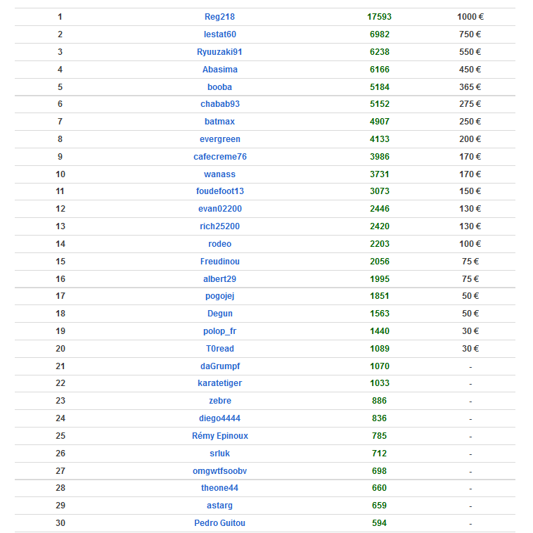 Du coup je regrette de n’avoir pas joué un poil plus Je pensais que ca allait être plus dur de rentrer dans le top 30.