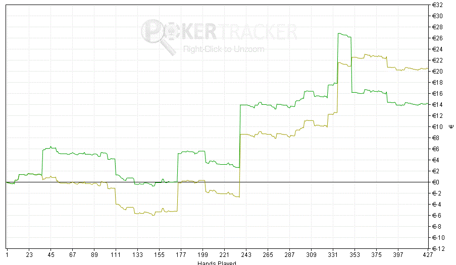 Malgré une session positive, cf graf… je me suis fait chier comme un rat mort cet aprèm :pinch: vraiment peu de gros coups se sont construits, pas de dynamique possible, trop de regs aux tables pour aller voir tous les flops, pas assez pour 3bet aggro comme un porc… juste de la patience et de la rigueur… autant dire tout ce que je n’ai pas lol!!! enfin bon je trouve que je m’en suis pas mal tiré quand même