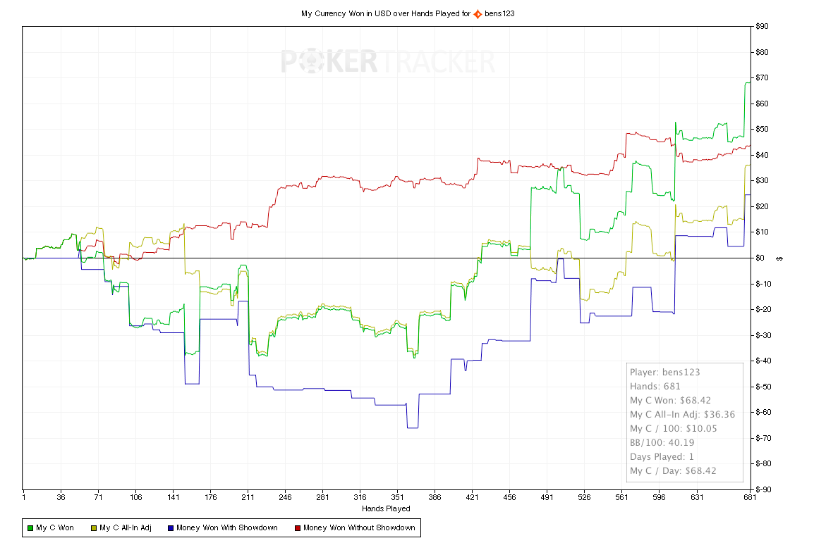 petite session aujourd’hui : +25 dollars en 220 mains. Bankroll à 970