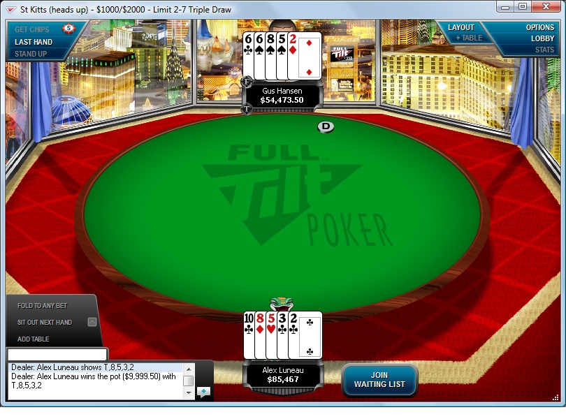 En ce moment même Alex Luneau vs Gus Hansen en 2/7 TD 1k/2k