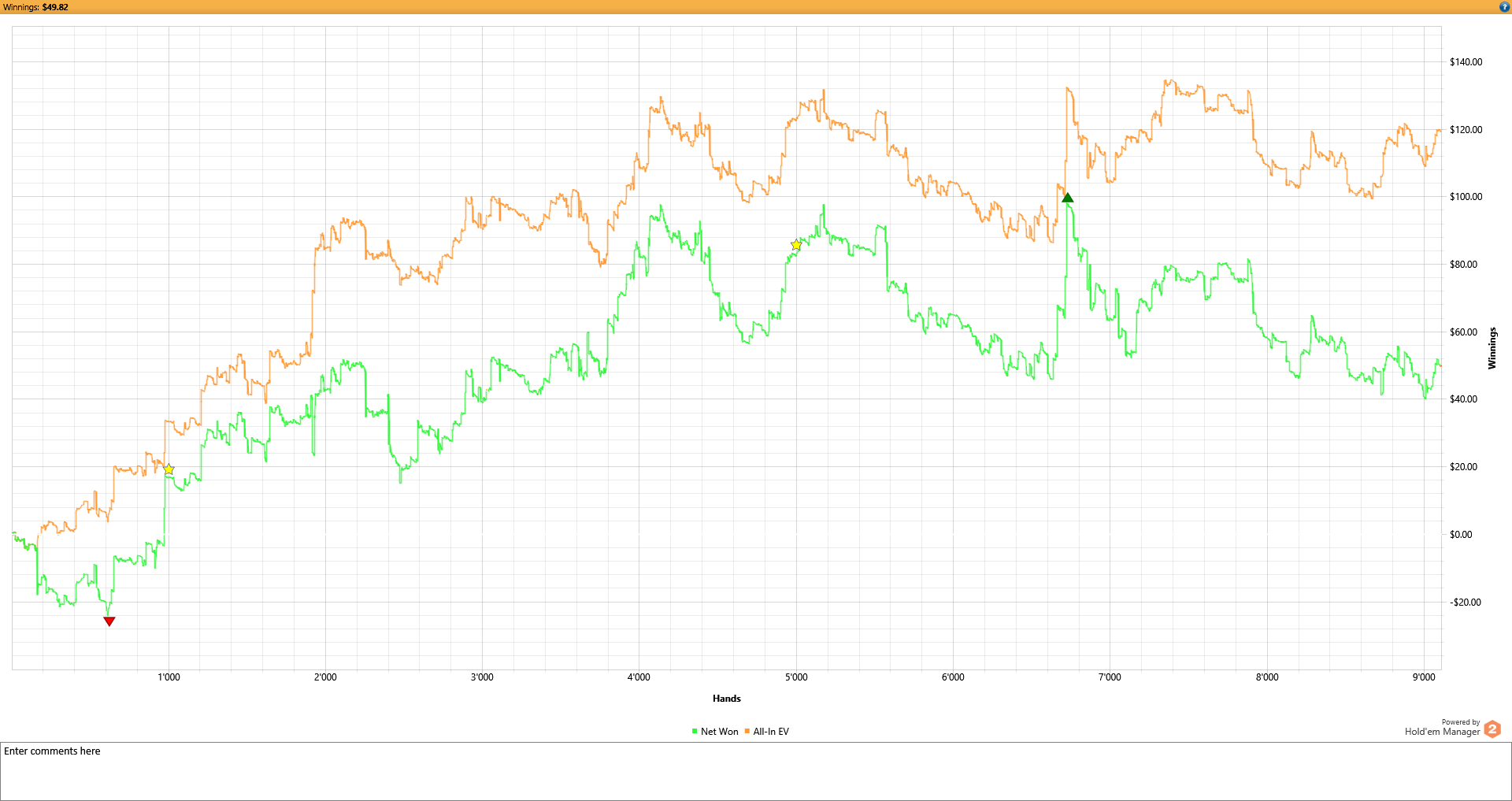 Je te comprends Gluon,c’est très frustrant à la longue;moi par exemple je run - 15 caves sous l’EV en 45k hands,sans cette variance je serai en NL 25 mais c’est peut-être un mal pour un bien,ça m’oblige à essayer de mieux jouer tous mes coups vu ce que j’encaisse ( enfin c’est mon coach qui m’a affirmé çà ) et ce que je perds en blindes je gagne peut-être en xp et en technique pour la montée de limite… bref accroche-toi!