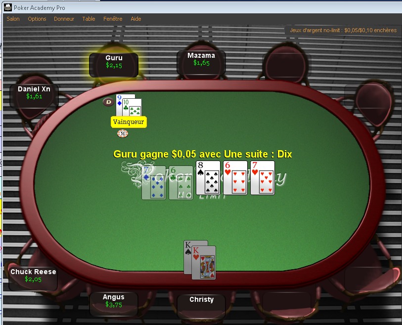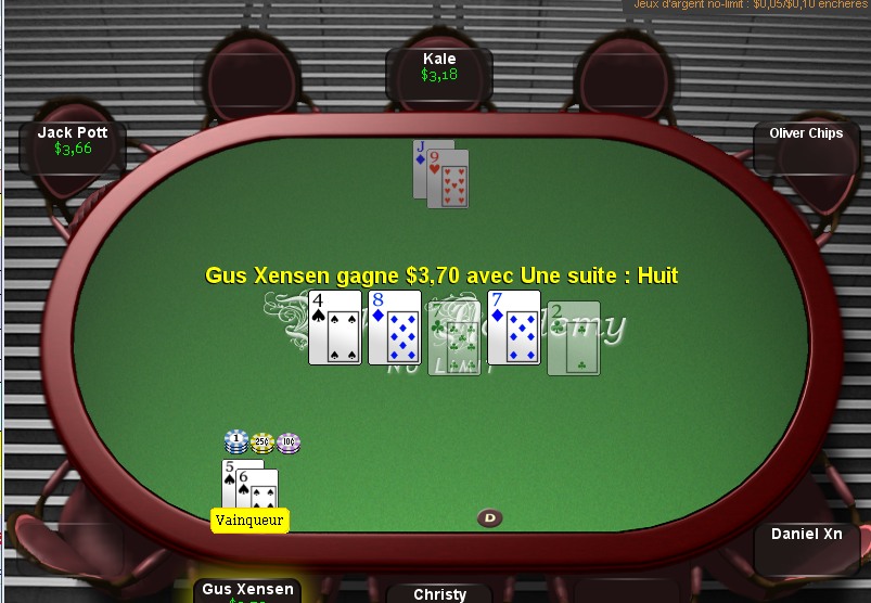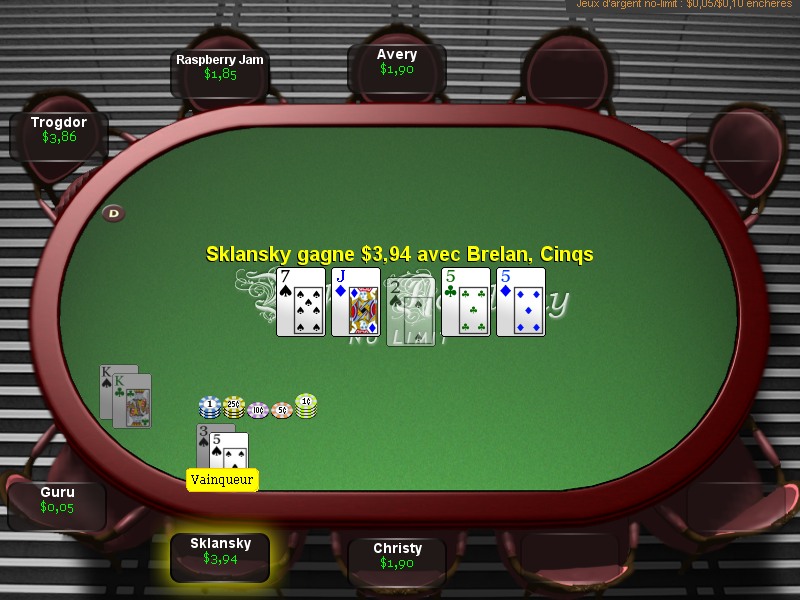 [quote=“spirit77, post:753562”]en micro les mecs font un peu n’importe quoi et on se retrouve à perdre [strike]à maintes reprises[/strike] à la river alors que l’on était favori jusque là[/quote]Tout d’abords tu retiens avant tout les coups ou tu perds et pas ceux que tu gagnes au showdown ou ceux où ton vilain lache sa poubelle ; mais surtout ce n’est pas une mauvaise nouvelle mais au contraire en prenant les bonnes décisions tu seras le plus souvent devant, bien sur tu te prendras quelques bad beat comme on s’en prend tous ce qui te fera tilter et je suis un spécialiste (au point de n’avoir pas l’envie de trop en dévoiler sur ce sujet), mais d’etre capable de prendre de meilleurs décisions que tes adversaires est le point primordial dans ce jeu et sur le long terme ce qui te permettra d’être gagnant .