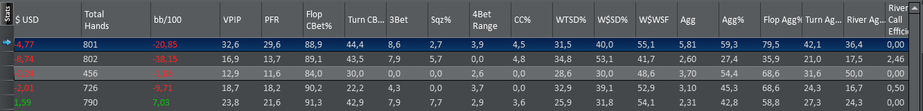 -VPIP/PFR semblent pas mal. Imo tu loupe des spots de coldcall vu l’écart très faible entre VPIP/PFR.