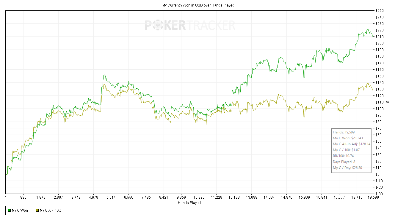 J’étais en good run mais je pense que 20Kh ça commence à être un échantillon assez significatif pour dire que j’ai un jeu gagnant et un certain edge sur les joueurs de la limite .