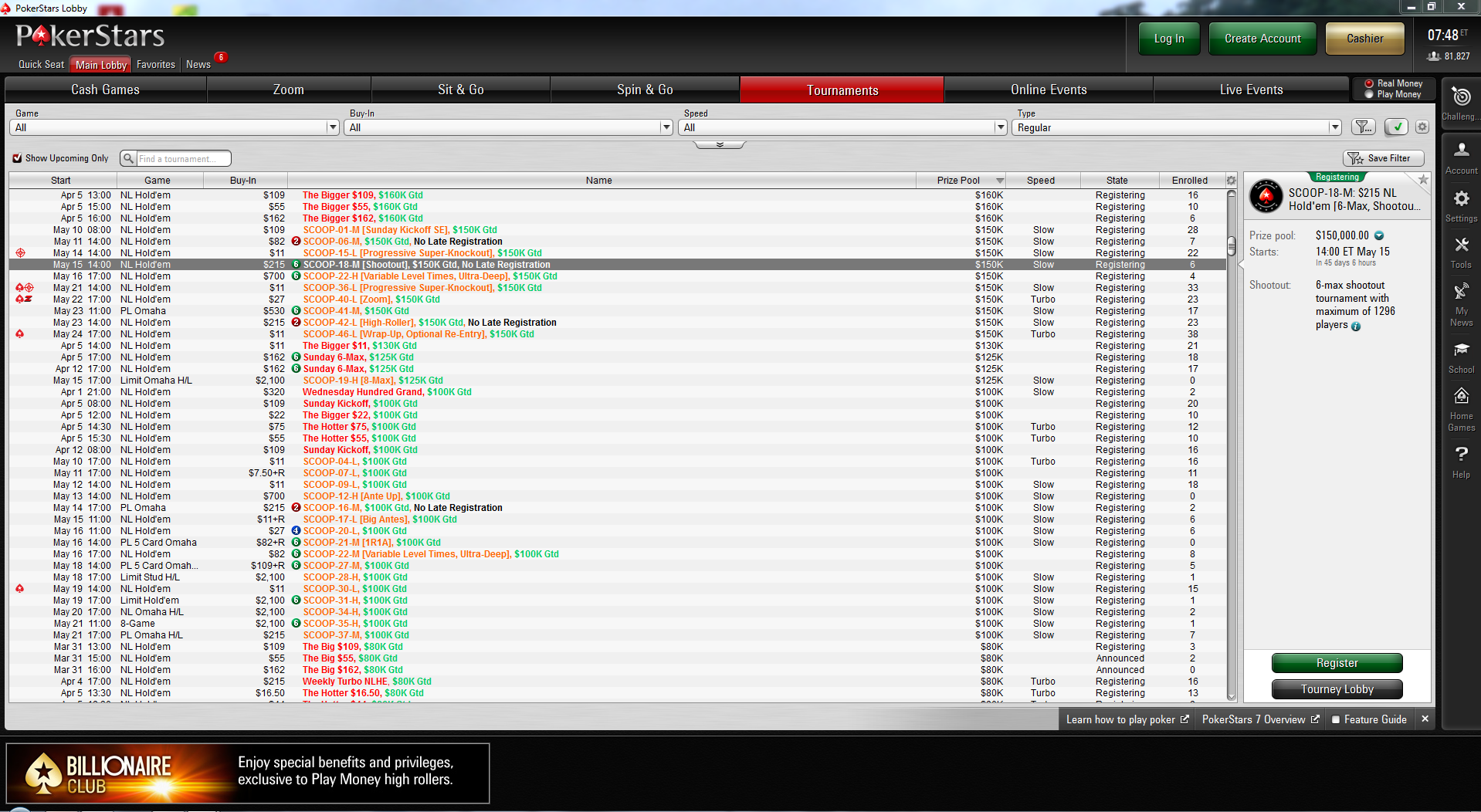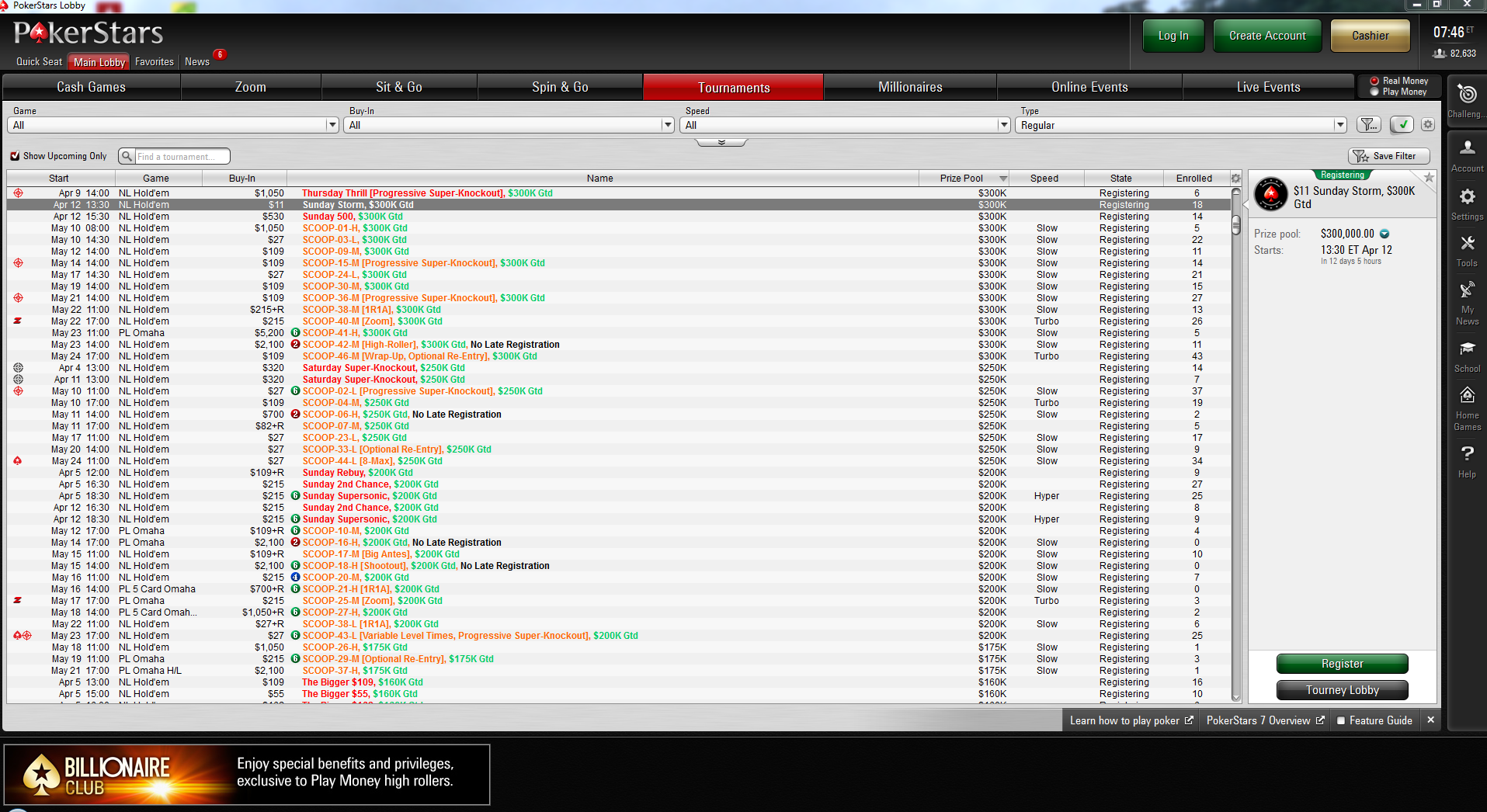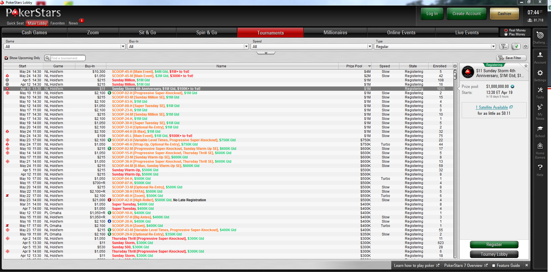 Le ME coûte quand même 10K ! Mais si tu regardes le Sunday Storm spécial anniversaire, t’as quand même 100K garantis au premier pour un buy-in de juste 11 dol !
