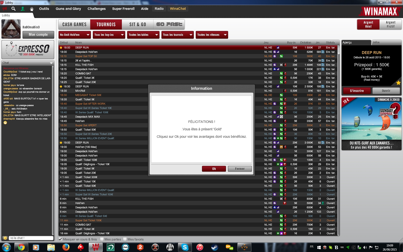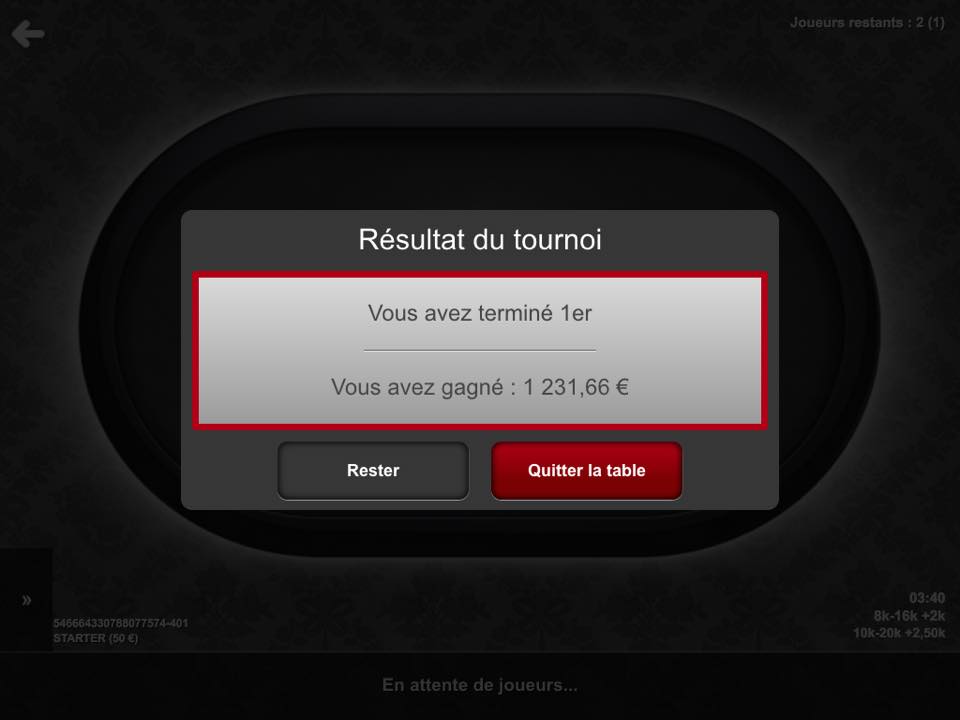 donc je commence et j’annonce que je suis en tf du starter et second en jetons on va chercher la win papé!