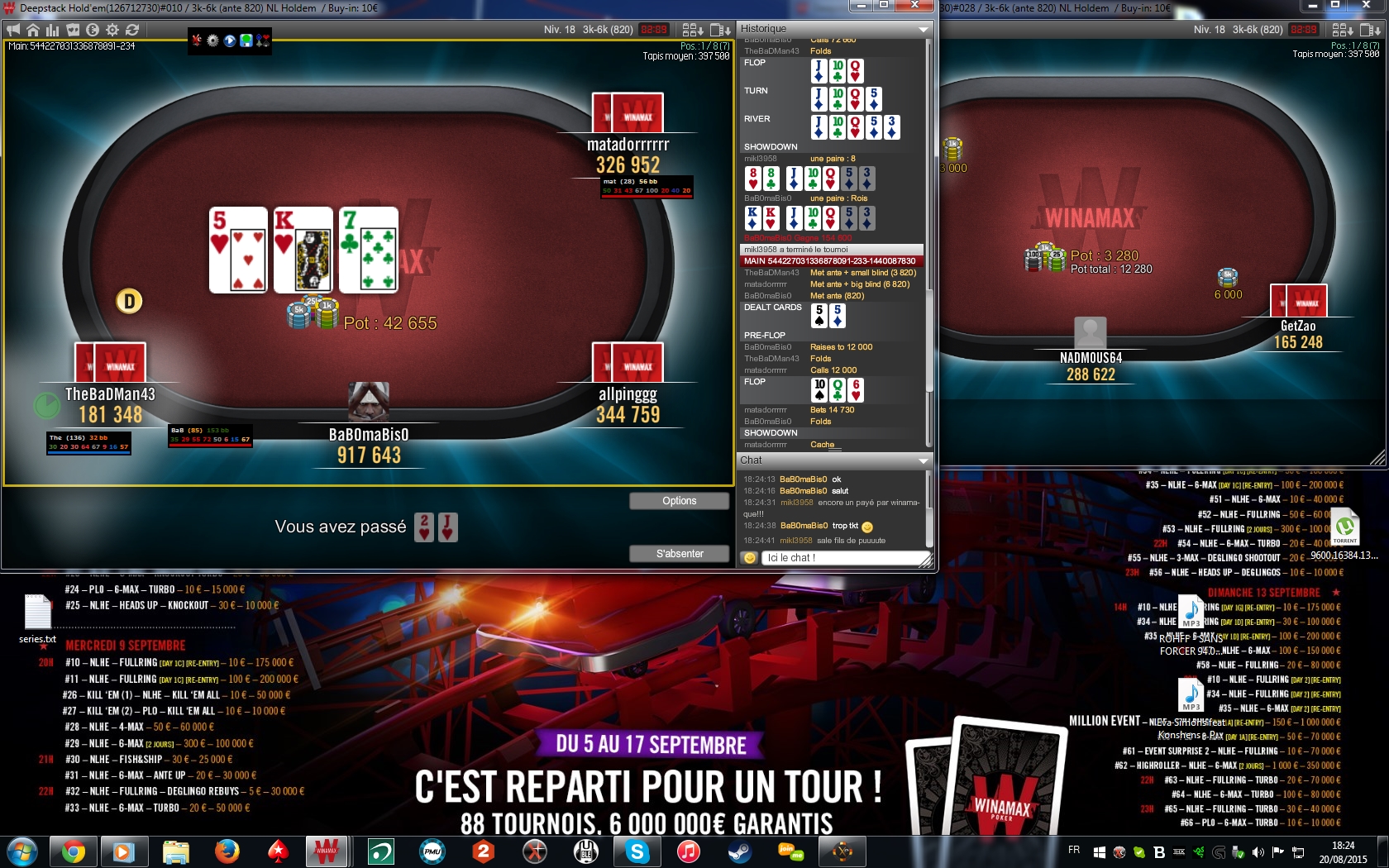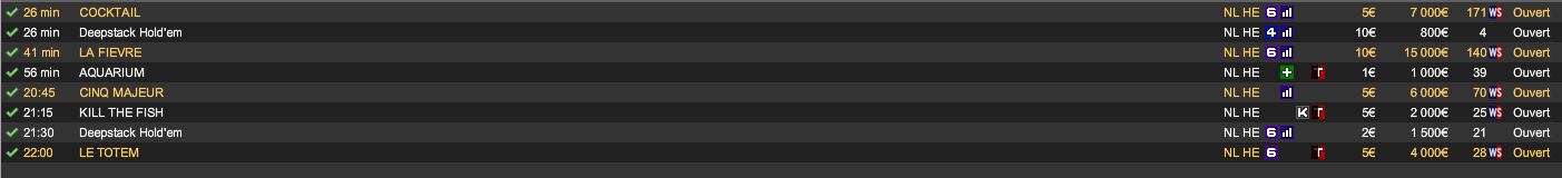jai register : rally magnum et le deepstack 6max de 15h30 bust des 2 premiers et itm sur le dernier avec 100bb =)