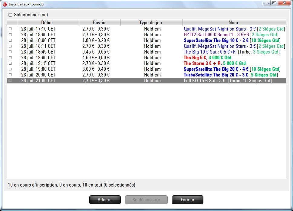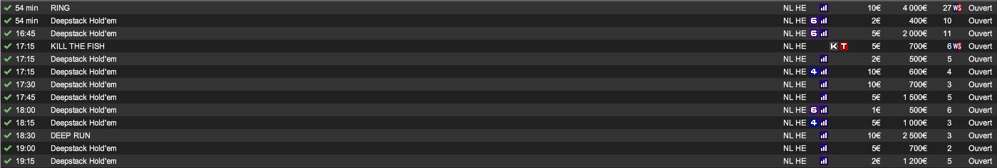 Bon on va se concentré sur les plus ou moins petits field today. On verra les gros tournois du soir demain soir.