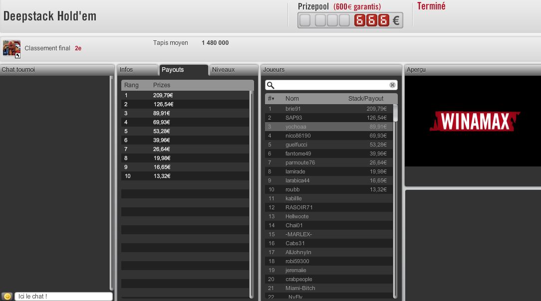 je me permets une correction, je tilt (sans savoir pouquoi d’ailleurs) et je finis second^^[/quote]