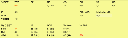 Si a ça tu ajoutes le fait qu’il 4Bet light de temps en temps (quel reg ne le fait pas?), ca devient un call.