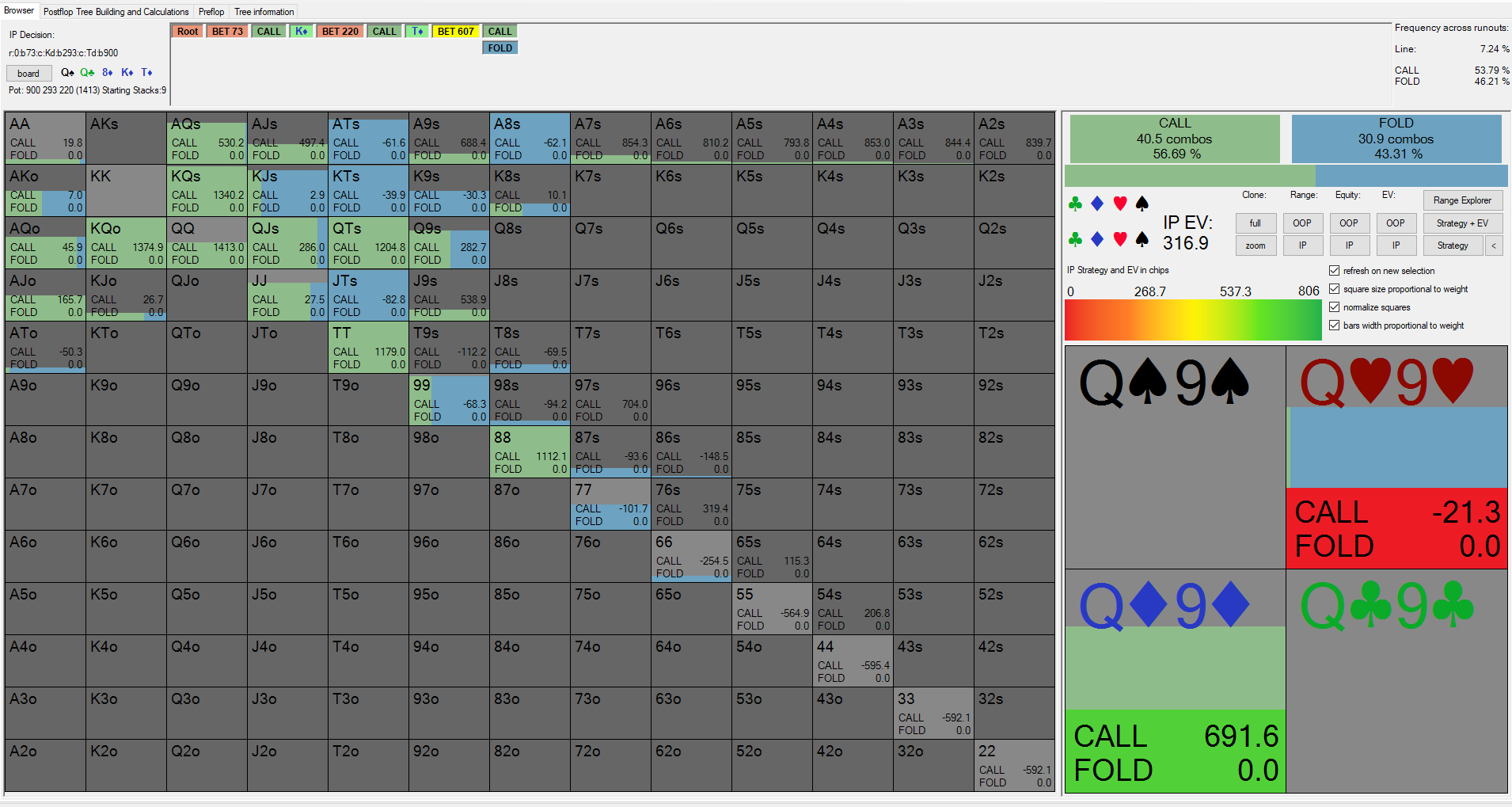 Attention, je dis pas que c’est bon HEIN, mais solver BTN fold des Qx river vs shove (qui n’est pas le sizing pref par sb river d’ailleurs) et river SB aime bluff (bluff pref d’ailleurs j’ai l’impression des low Axs )