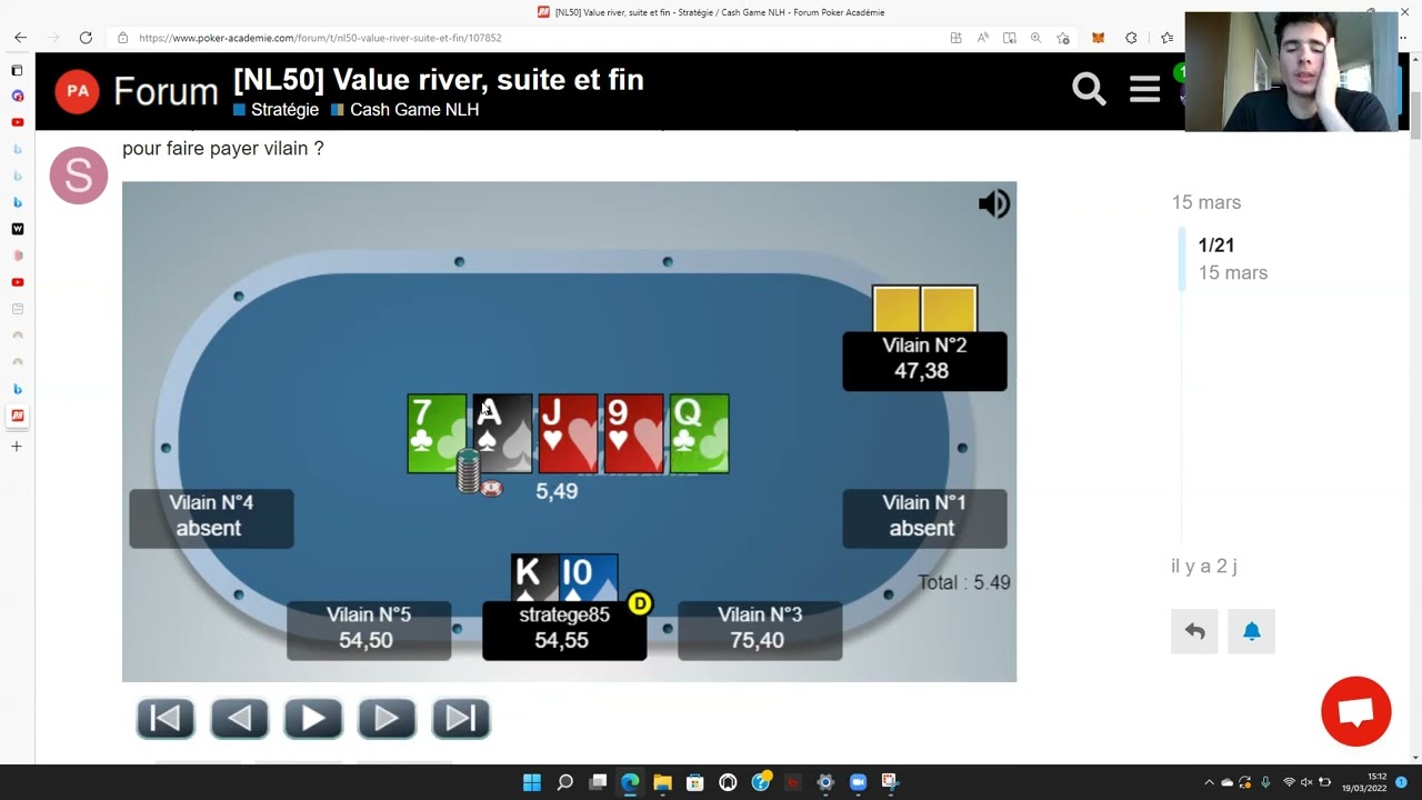 Merci pour ta vidéo @Aurora1 la line que tu exposes est assez standard et celle que je vais utiliser contre beaucoup de vilains, sur celle-ci je suis sorti de ce standard (conservateur) car je ne connaissais pas vilain alors que les regs de 50 et 100 sont étiquetés et donc j’ai choisi de le caser dans la case récréatif et j’ai pris une line inhabituelle et c’est pour ça que je l’ai postée car comme tu le dis c’est un spot récurrent et une line spéciale, l’intérêt était pour moi de voir les réponses et les éléments pris en compte par rapport à mon descriptif et j’ai expliqué mon thinking process quand j’ai posté la fin de la main mais ce n’est pas cette line que je vais prendre dans 90% des cas.