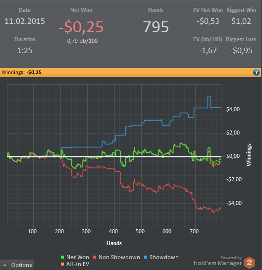J’ai dû cash out 30 balles donc la BR va encore redescendre un peu. Je pense sit le Fast Poker à fond pour remonter le plus vite possible, d’autant plus que j’ai un bonus à clear!