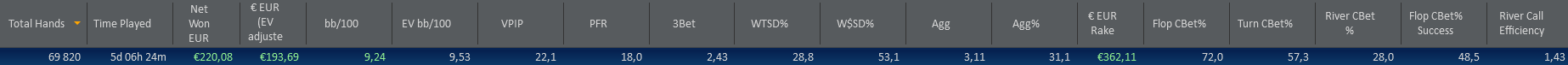J’ai whine à cause de la période break even. J’ai conscience que c’est exagéré mais bon, le mental au poker c’est pas mon point fort je crois… :laugh: