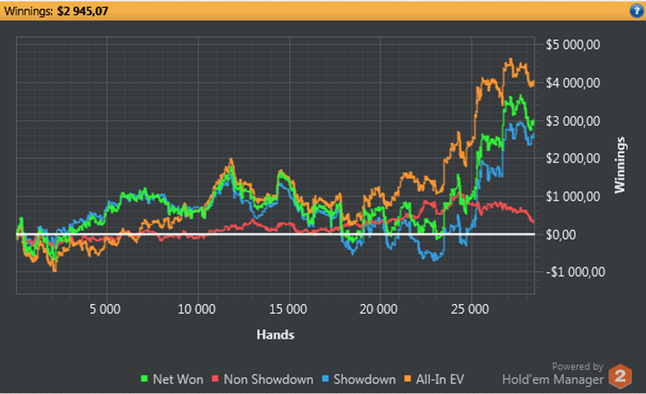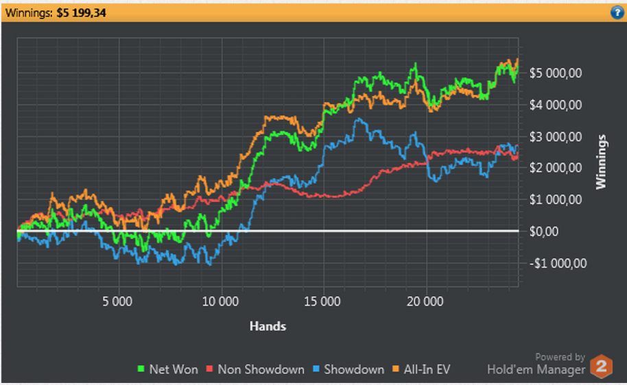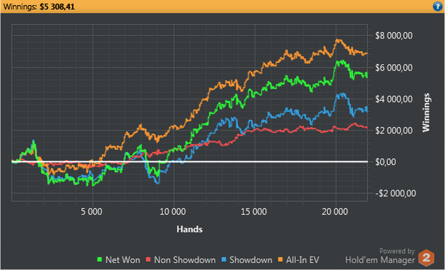 Et en NL2 j’ai 0b/100 sur la journée en ev contre 14bb/100 en réel!