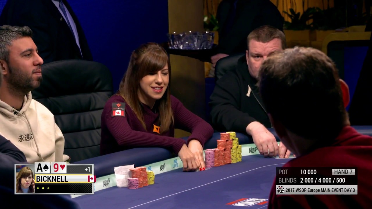 Enorme bibi tu casses tout! Le A8 resteal en sb est magnifique, les commentateurs disent que c mal joué pcq gruissem peut se reveiller ac une main et a 27bb mais c’est des gros nit… C hyper rare vu que t’as un As blocker et qu’il peut folder les 9 ou meme les 10… il faut qu’il tombe sur JJ, QQ ou KK… Et ça encourage le bouton a fold de voir que t’as pas peur que gruissem call. le mouv est parfait… et en plus de tout ça vu que c’est filmé toute la table voit que tu shove A8 pour demain donc ils vont te call avec des A10s etc. demain.