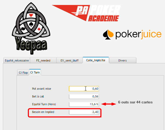 6 outs clean = moins d’une fois sur 6 turn vers river.