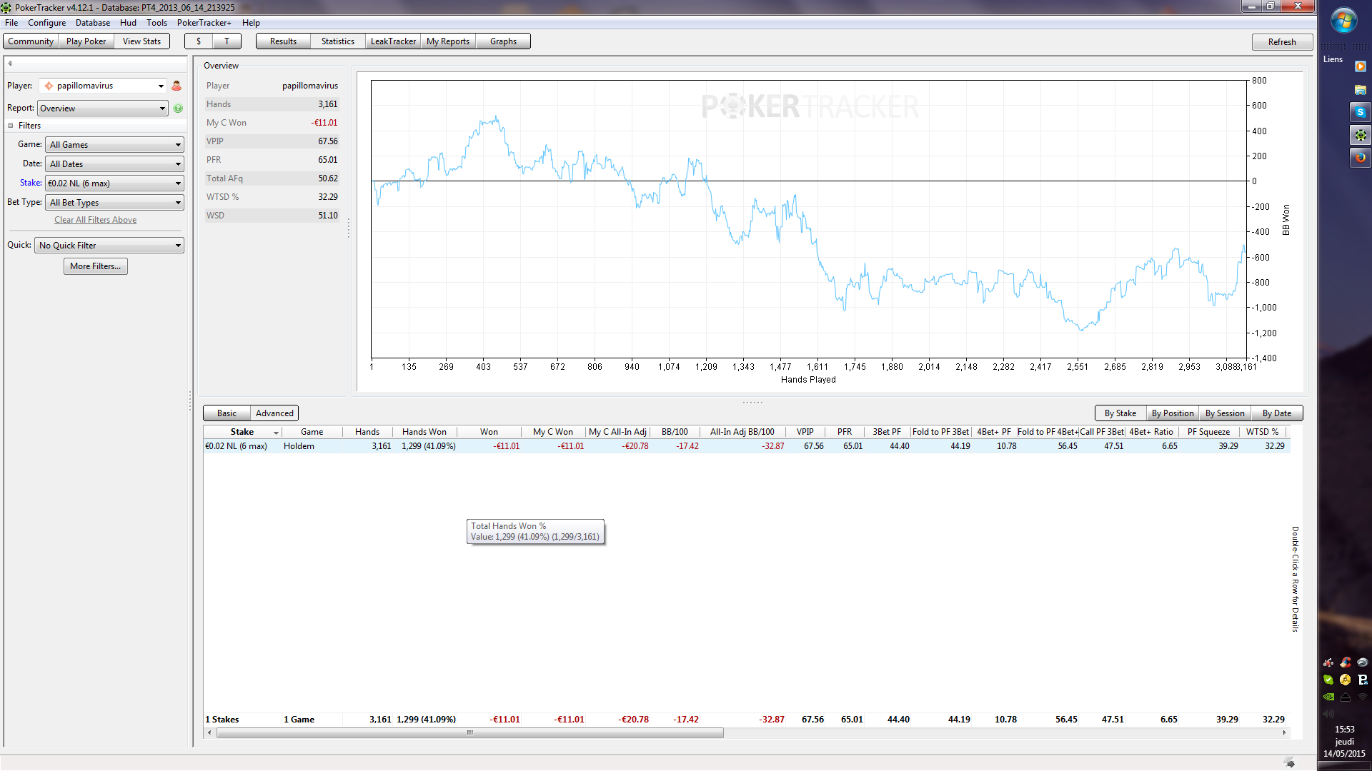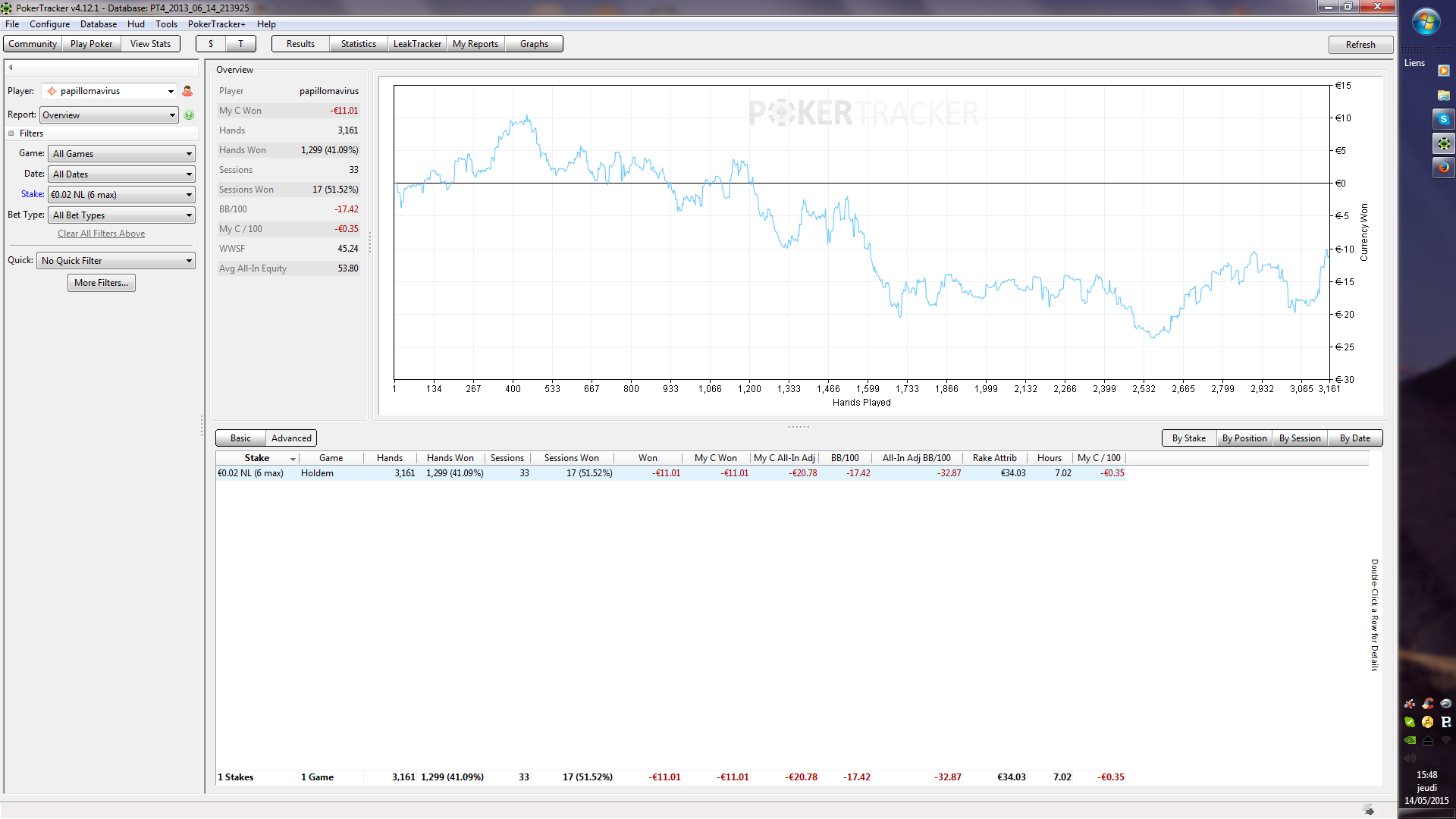 On s’est joué en NL2 LoL, tu est classé en “déglingo” dans ma base (32/30, 3Bet : 32) mais bon vu le sample…