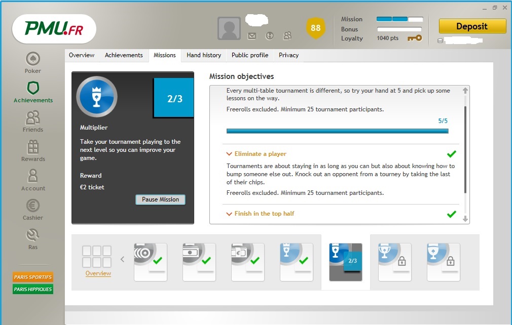 J’ai fait 5 tournois, il m’affiche donc 5/5 et pourtant l’objectif n’est pas validé par une croix verte.