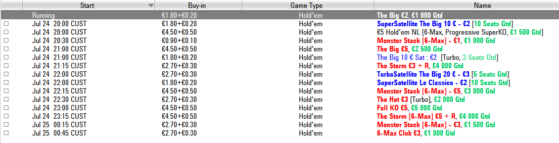 Début aux alentours de 17-18h - Tous les MTT BI<10€ + sats + un set de 3/4 MTT à 10€