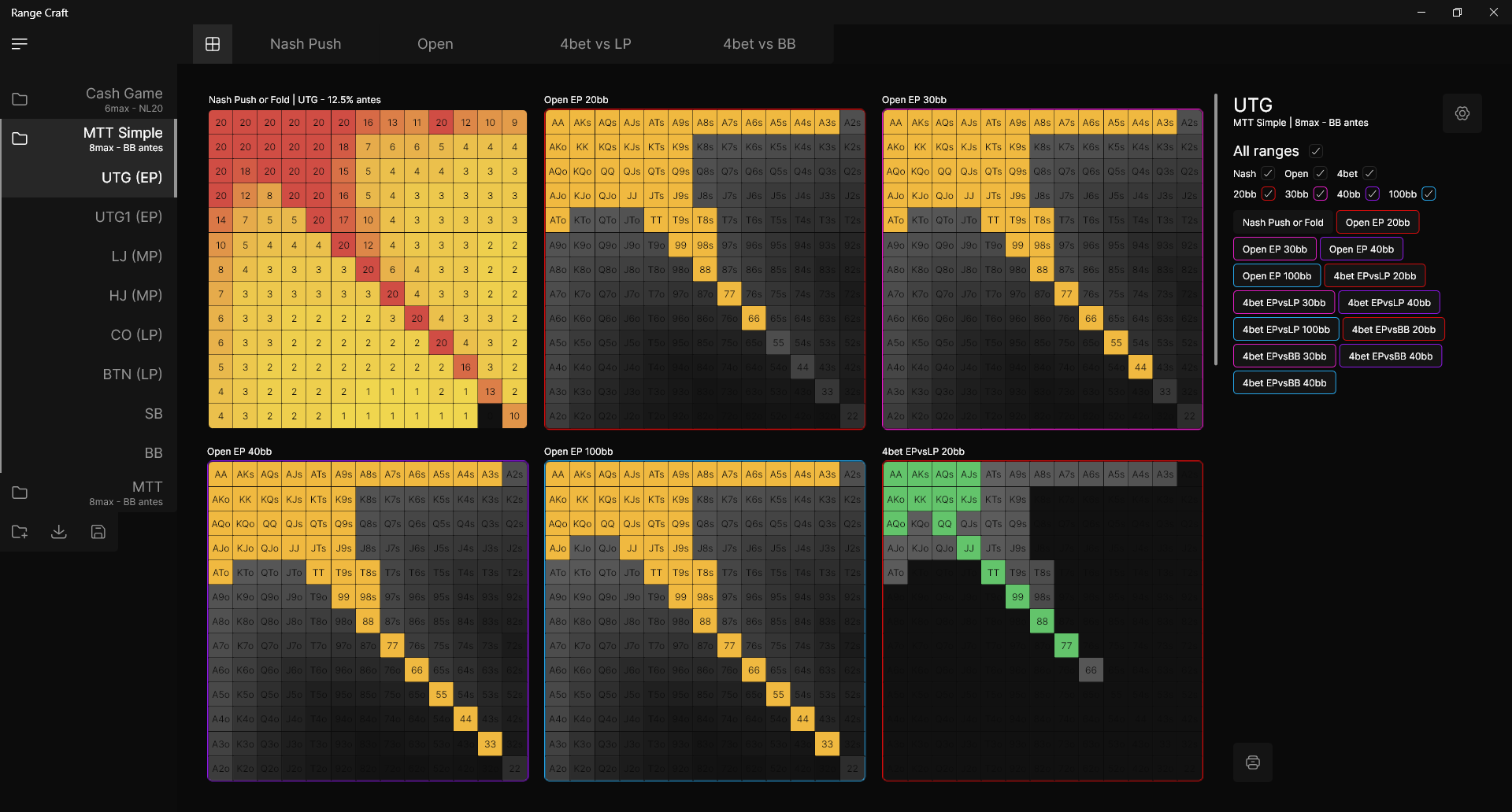 L’onglet overview est super bien pensé mais quand je passe d’un onglet à l’autre (de SB à BTN par exemple) mes choix sont réinitialisés. Ca serait top que je puisse décocher l’option 4bet ou 3bet dans l’overview et que ça n’apparaise plus tant que je l’ai pas recocher.