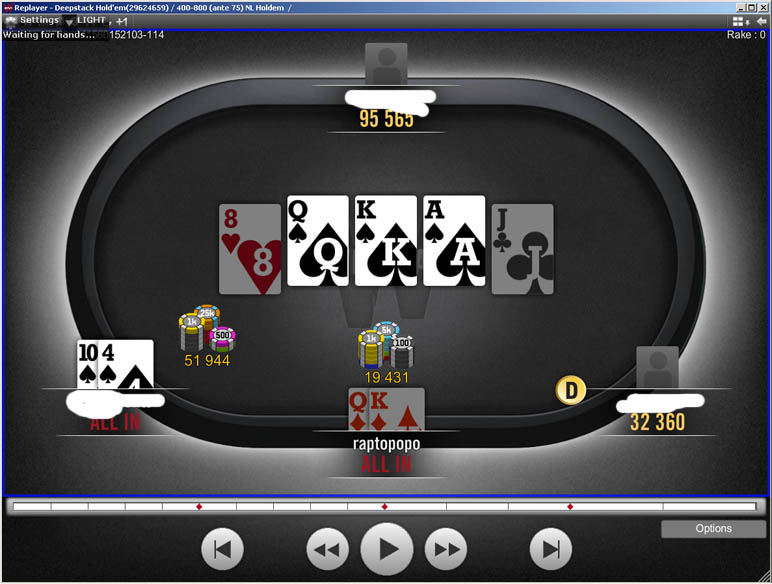 Gros chip lead pendant les 3/4 du MTT, puis d’un coup tout se dérègle, en TF tous les moves échouent, et busto 7eme,on reste comme un con devant l’écran, sans trop comprendre ce qui s’est passé, en se demandant à quel moment on a spew le megaa stack sans s’en rendre compte… :laugh: :laugh: