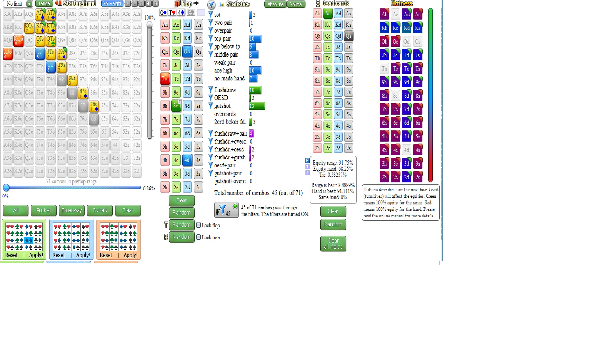vs 4 KJs et 5 ou 6 combos de FD, voir qq random bluff avec GS (j’y crois pas trop en NL10 mais sait-on jamais).