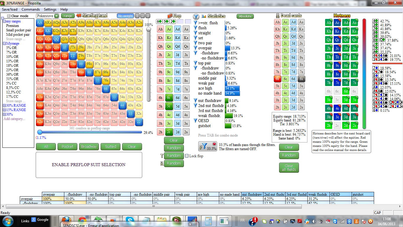 En estimant que vilain va fold ses “air ball” dans ce pot multiway, mais cbet ses mains qui ont une certaine , équity. Je ne sais pas comment il va play ses mains intermédiaires (paire de 8 à paire de J), j’ai considéré qu’il allait les cbet.