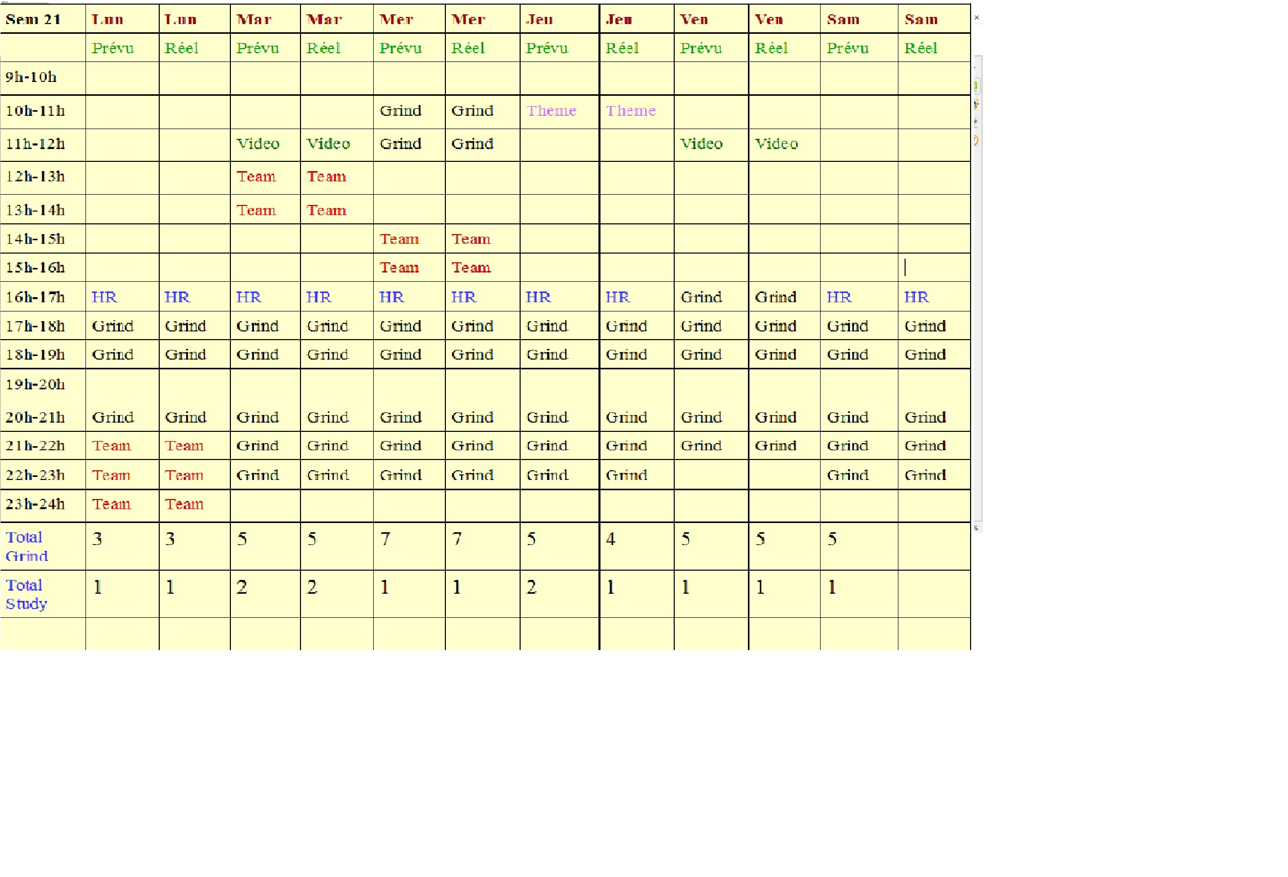 Dans un 2è temps je veux me prouver que j’ai les moyens de mes faibles ambitions;aussi je repars sur un mode de grind agressif avec horaires définis,réunions skype… et moins d’activités passives ( les vidéos poker ).