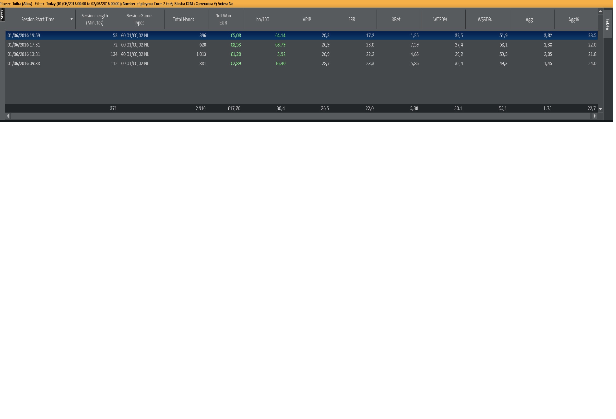 Si je peux me permettre, sur 500 mains (je ne sais pas si j’ai que de la NL2), je te trouve ultra large UTG et UTG+1 ! C’est mon taux d’open steal au CO
