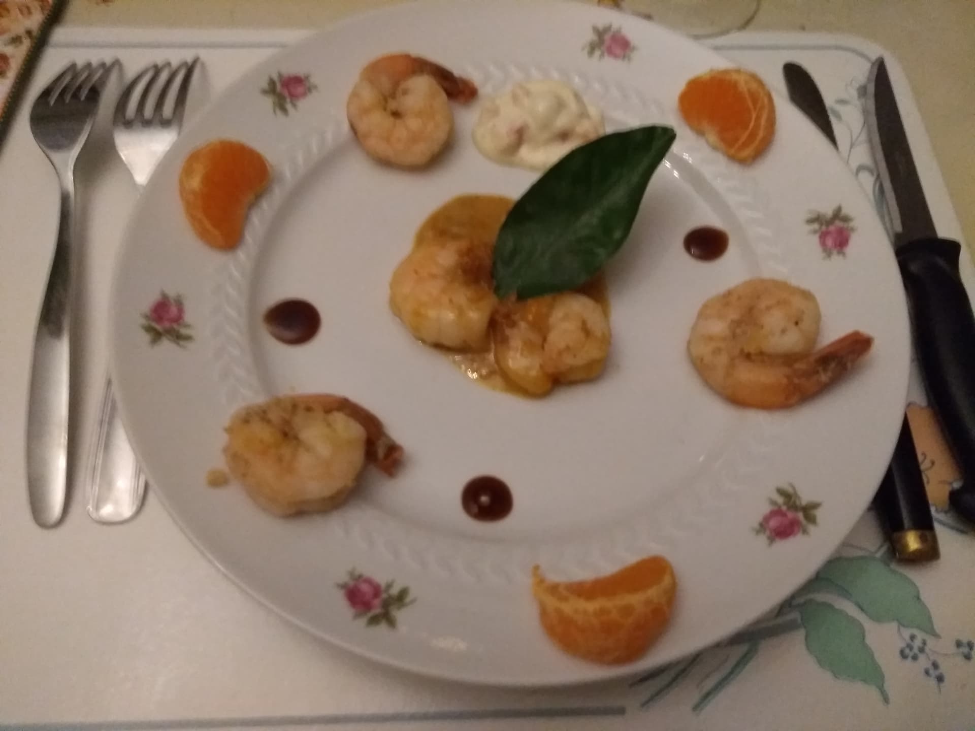 Chaud/froid de scampis, sauce curry (Ras el Hanout jaune pour être exact) & clémentines.