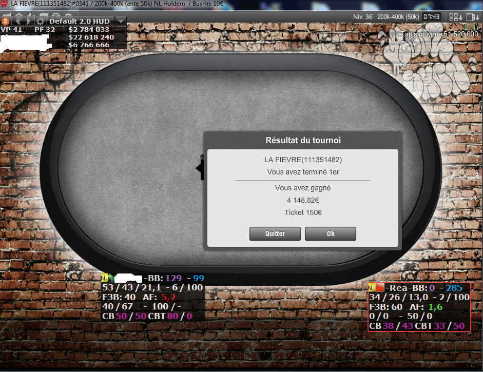 flav44 Tu as raison javais gagne l’after work il y a peu de temps ! Concernant mes limites lorsque je jouais en NL2 c’etait dns le cadre d’un challenge , il ne s’agissait as de mes limites habituelles