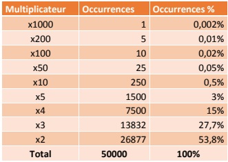 Le jackpot maximum x1000 reste en place, même si sa fréquence est passée de 1 occurence sur 20.000 à 1 occurence sur 50.000.