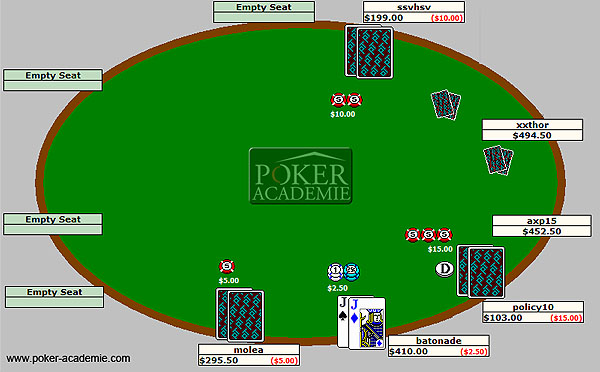 ssvhsv vient d'arriver et relance UTG. Policy10 au bouton est un relanceur sérieux: VPIP 25% et PFR 15%.